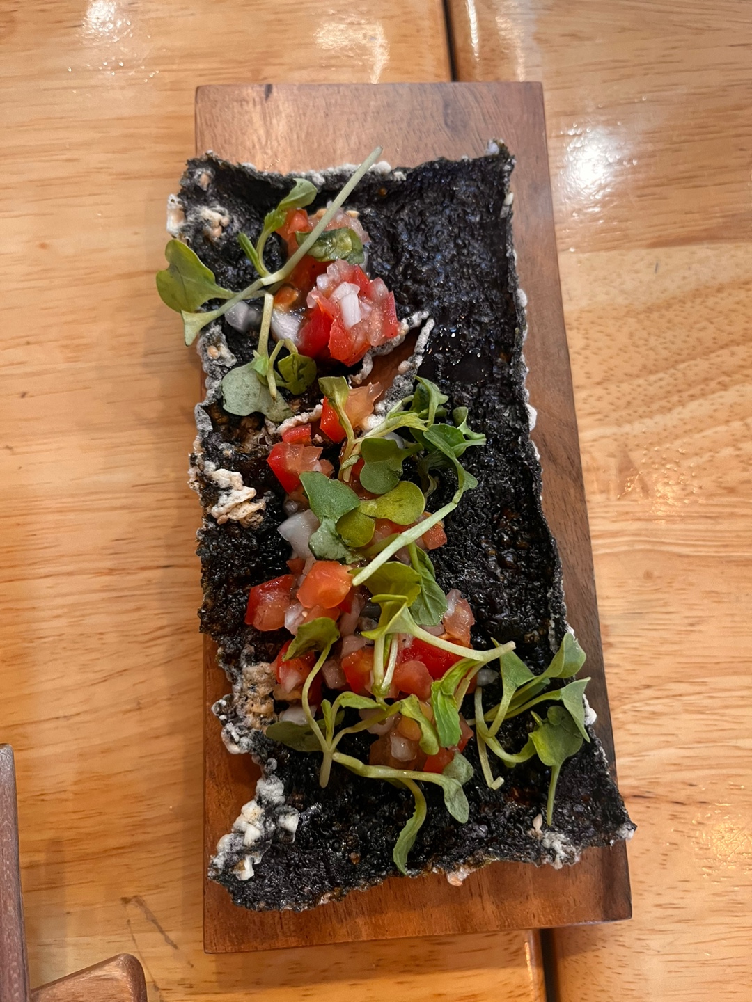 ✔️ 참고: 에피타이저로 김부각 위에 토마토와 야채를 올린 샐러드가 나와요. 한입씩 먹기 좋아서 소확행이었어요.