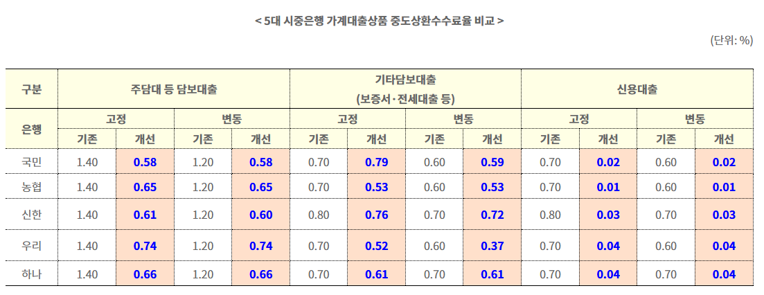 특히! 2025년 1월 13일 이후 체결되는 대출계약건부터는 중도상환 수수료가 이전보다 절반이상 인하되었다는 것 아시나요?