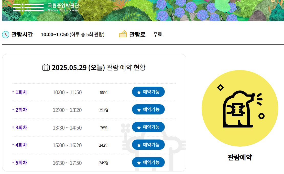⏰ 관람시간: 요일마다 다르니 잘 보고 가세요!